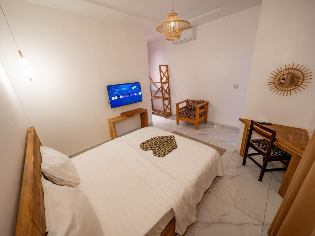 Establerted in Zinvié, Natu Resort features a garden, bar and free WiFi throughout the property. Boasting a concierge service, this property also provides guests with a children's playground. The resort has an indoor pool, hot tub and a 24-hour front desk. At the resort, the rooms are fitted with a wardrobe. Complete with a private bathroom fitted with a shower and free toiletries, all rooms at Natu Resort have a flat-screen TV and air conditioning, and some rooms also boast a terrace. The units will provide guests with a desk and a kettle. The breakfast offers buffet, à la carte or continental options. At the accommodation you will find a eespai de relaxaciói de restauració serving African, French and international cuisine. Vegetarian and dairy-free options can also be requested. Cotonou Cadjehoun Airport is 34 km from the property, and the property offers a paid airport shuttle service.