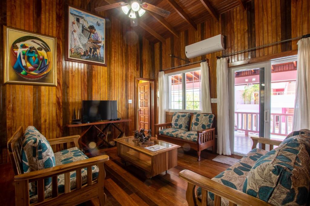 Located on the seafront in Placencia, Miramar Suites offers a private beach area and tropical gardens. Each stylish apartment has a fully equipped kitchen and furnished apartment with sea views. The Miramar Suites will provide you with a TV, air conditioning and a private bathroom. Kitchens include a microwave and an oven. At Miramar Suites you will find a terrace with barbecue facilities and free Wi-Fi in public areas. Free parking and free bike rental is also available. The centre of Placencia town is a 5-minute walk from the apartments, while Placencia Airport is within a 5-minute drive. From here it is just a 20-minute flight to Belize City.