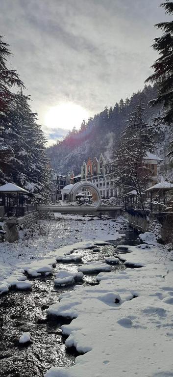 Ananiko is located in Borjomi and offers a terrace. Both free WiFi and parking on-site are available at the apartment free of charge. The accommodation provides a minimarket, a tour desk and currency exchange for guests. The apartment comes with 1 bedroom, 1 bathroom, bed linen, towels, a flat-screen TV with satellite channels, a dining area, a fully equipped kitchen, and a balcony with mountain views. The air-conditioned unit at the property features a walk-in shower and a dressing room. Additional in-room amenities include wine or champagne. For guests with children, Ananiko features outdoor play equipment. Kutaisi International Airport is 153 km away.