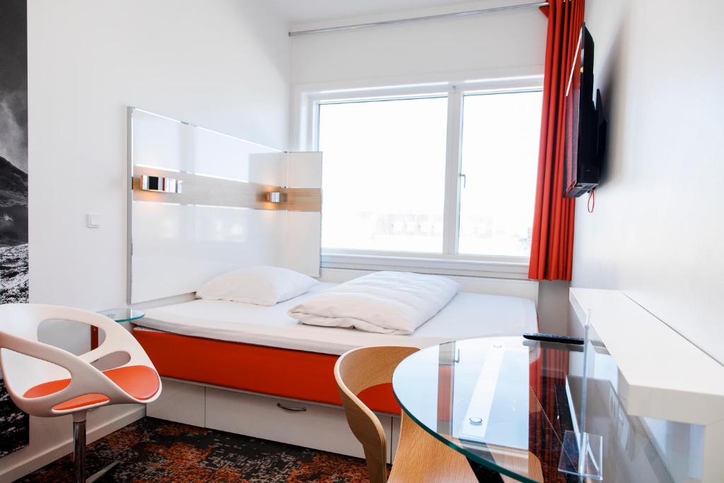 "This review is actually for Hans Egede Hotel! I had booked HHE Express, its low(er)-budget partner, but on check-in was told I had been upgraded to Hans Egede (500 m up the street) as they were full. Hans Egede was great, certainly the best place in Nuuk. Very spacious, comfortable room with a real double bed which is quite rare in Scandinavia. Great breakfast with a view on the fifth floor (were there is also a good and rather classy and pricey Steakhouse restaurant). Only experience with HHE Express was staff at reception which was great, as in Hans Egede as well. Don't know what the usual rate would have been."