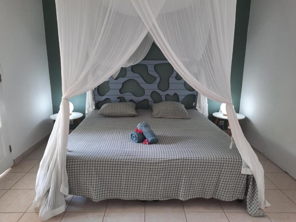 "Chambre satisfaisante , avec un très grand lit de 2 m confortable et petite terrasse agréable le tout situé à 10mn à pieds de l'embarcadère et à côté de la plage de grande Anse même si on ne s'y baigne pas.Très bon accueil des propriétaires très sympas. Et depose bagage très pratique. Citerne autonome qui pallie très bienaux coupures d'eau régulières sur l'île"