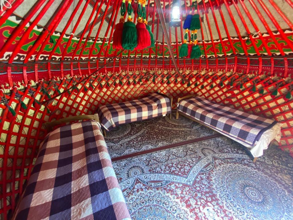 "Clean and spacious room with a perfect view of the Jeti-Oguz rocks! Great meals provided for breakfast and dinner. We had to extend our stay as we were not feeling well and were very comfortable. The host family was lovely and helped us organise a taxi to Karakol."