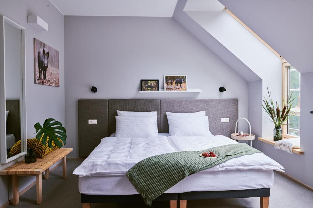 "Privatumas, gamta.Spa zona puiki,tik reikia susiplanuoti ir užsisakyti iš anksto.Vakarienę ne sezono metu taip pat galima užsisakyti, reikia perspėti, kad norėsite vakarieniauti ir restoranas dirbs jūsų pasirinktu metu. Patiekalai gardūs,pusryčiai gausūs. Taip pat išbandėme miško maudynes su audio gidu, malonus pasivaikščiojimas po mišką garantuotas."