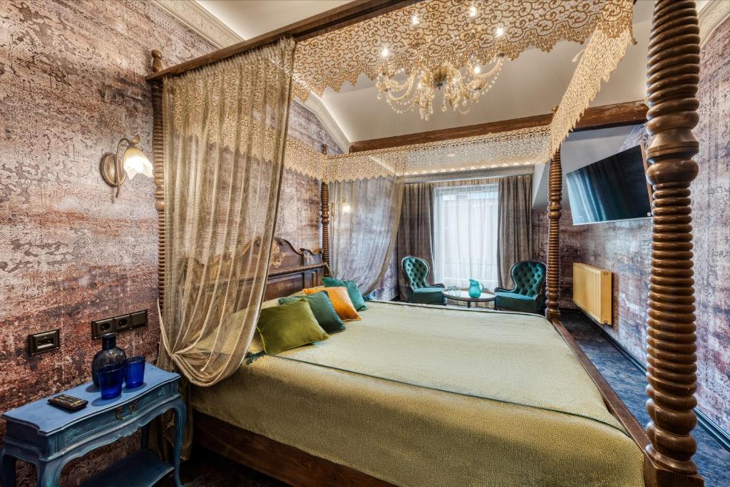 "Patogi didelė lova, išskirtinio dizaino kambarys ir visa viešbučio aplinka."