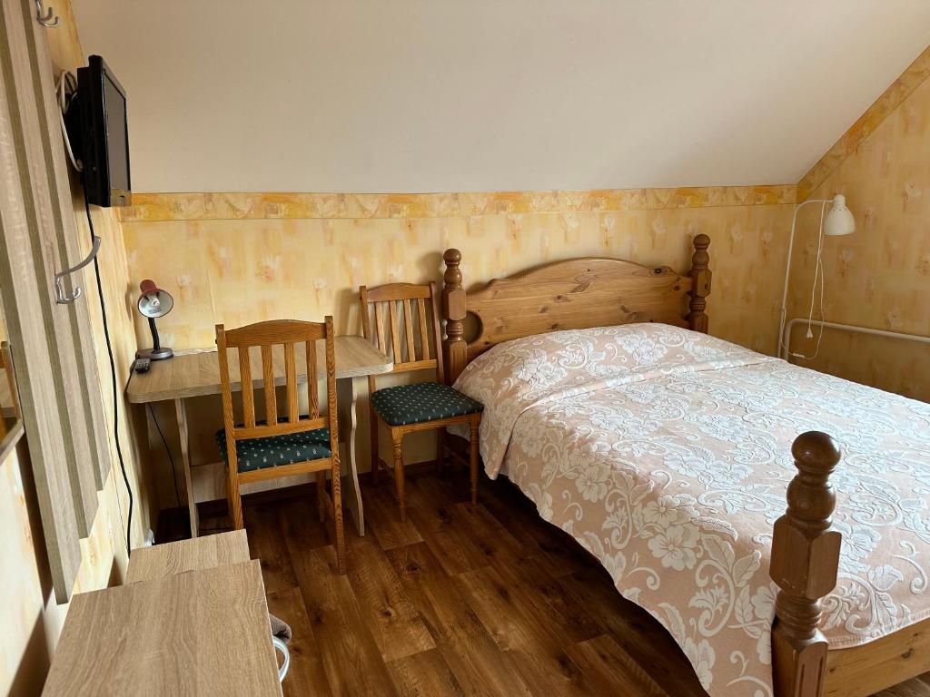 "Salīdzinoši vienkāršs viesu nams, bet jaukā, skaistā, klusā vietā pie ezera. Tajā pašā laikā arī moderns. Numuriņš bija neliels, bet komfortabls, mierīgā zaļā krāsā. Labi matrači. Saimniece rūpīga un pretīmnākoša.👍"
