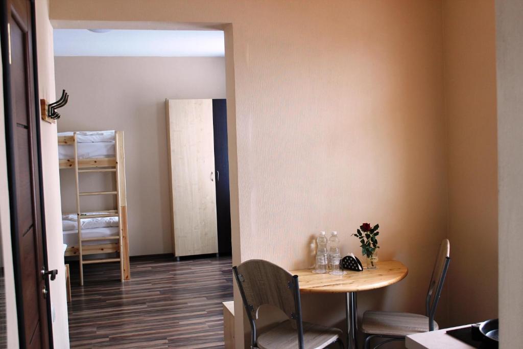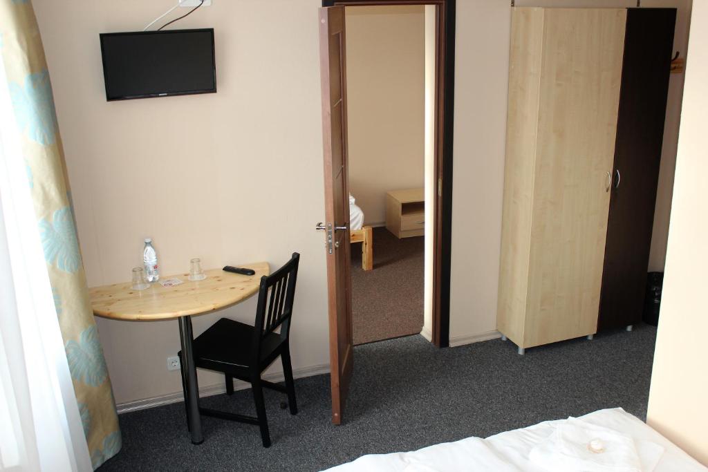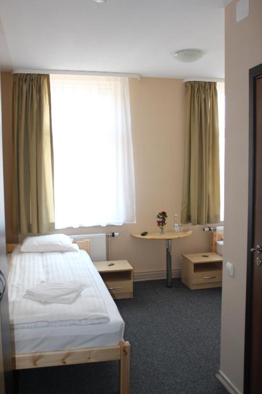 "We were group of friends. We have stayed for one night. We don't know about sightseeing's as we came for event and we just needed to stay for one night. The hotel offers breakfast for 8 Euros per person. It was hot and cold meal, simple but everything was Ok. In the corridor - there was possibility to use kettle, refrigerator, cups for tea. Normal room, comfortable bed. Close to the hotel was supermarket and KFC. It was possible to use inner yard, there were some tables and chairs and grill zone. As it was nice weather - we have stayed for some time outside. There was place for car in the yard but also possible to keep on the street, calm place."